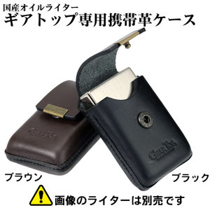 ギアトップオイルライター専用 携帯ライターケース ベルト通し付き 革ケース ロゴ入り ブラック/ブラウン 二種 【ネコポス可】