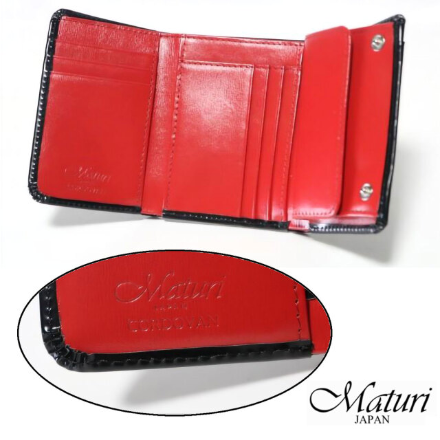 三つ折り財布 コンパクトウォレット マトゥーリ エグゼクティブ コードバン 馬革 牛革 Maturi JAPAN MR-501BK/RED |