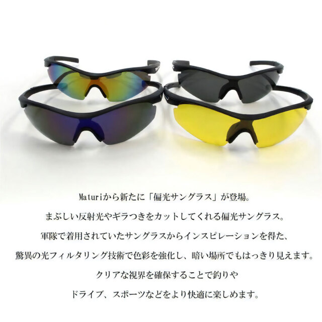 | サングラス 偏光レンズ Maturi マトゥーリ スタイリッシュ スポーツ偏光サングラス 男女兼用 超軽量 イエロー TK-018-4 |