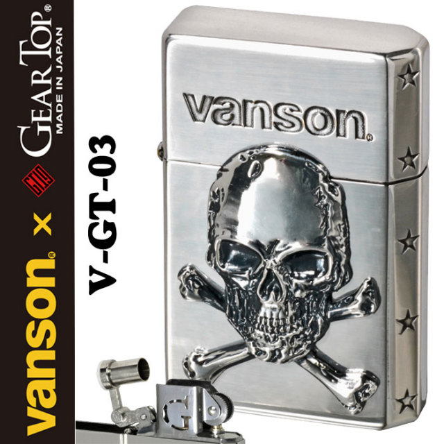| VANSONxGEAR TOP (ギアトップ )コラボ 国産オイルライター メタル貼り 2面加工 クロスボーンスカル シルバー |