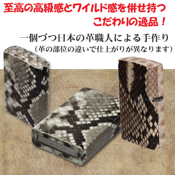 zippo(ジッポーライター)パイソン 本蛇革巻き ヘビ皮巻き PYTHON おしゃれ カッコイイ メンズ 高級 手縫い仕上げ ギフト プレゼント 送料無料【ネコポス可】