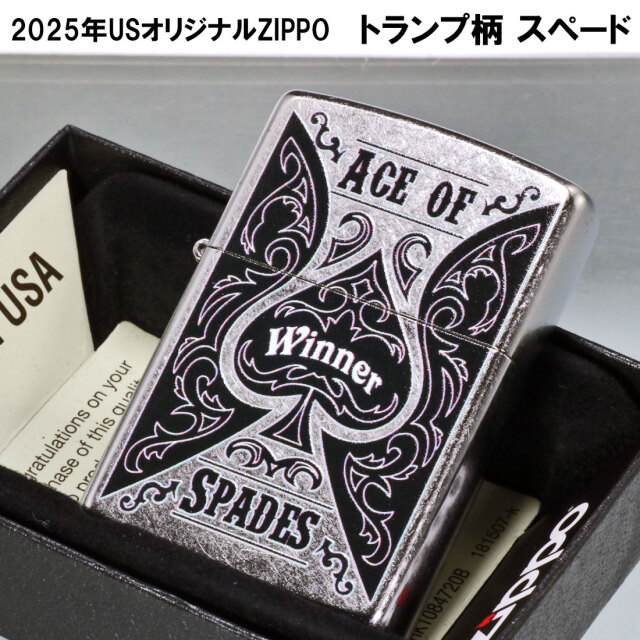 zippo(ジッポーライター) USオリジナルZIPPO 2025 トランプ柄 スペードデザイン ACE OF SPADES ストリートクローム プリント加工 zZ207-125615 オイルライター メンズ レディース Winner 勝利 幸運 カッコイイ ギフト プレゼント 送料無料 【ネコポス可】